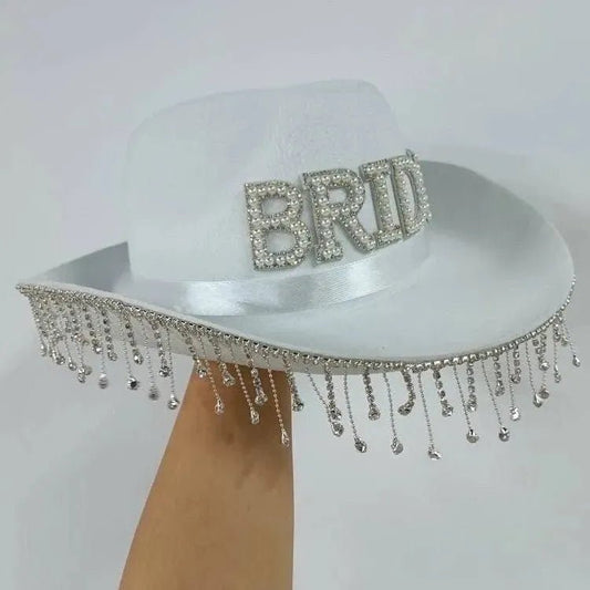 Cowboyhut mit Strasssteinen für die Braut und Schleier – Junggesellinnenabschied, Cowgirl, Junggesellinnenabschied