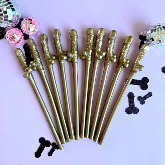 Roségoldener Penis-Strohhalm mit Glitzer – Lustige Junggesellinnenabschieds-Dekoration, Konfetti